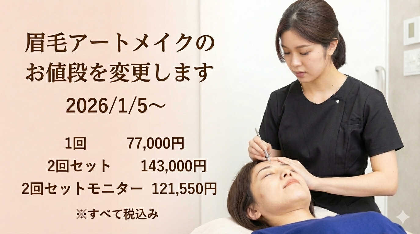 アートメイク施術価格改定のお知らせ(2025年1月5日より)